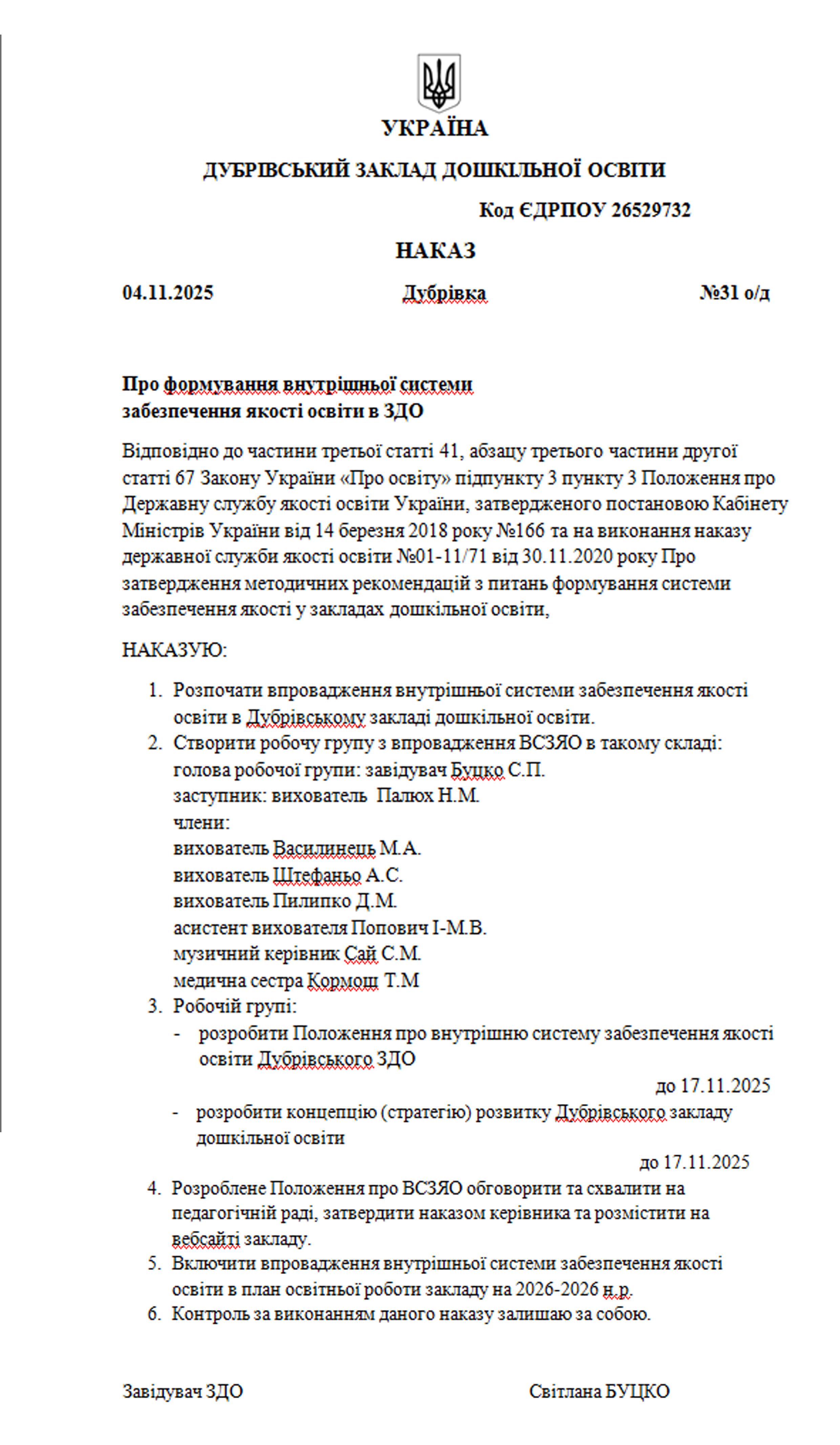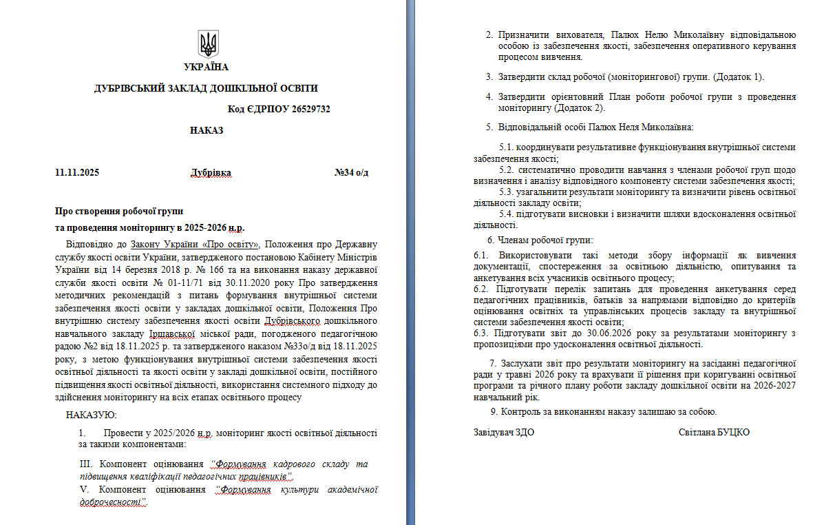 ЗКАЧАТИ Наказ Про створення робочої групи та проведення моніторингу в 2025-2026 н.р.jpeg